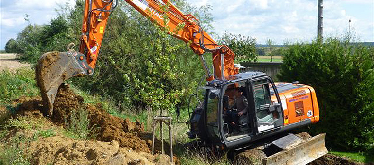 Wir führen alle Arten von Erdarbeiten für Sie durch. Ob das Ausheben einer Baugrube für einen Keller, das Planieren des Geländes, den Abtransport von Erdreich oder das Verteilen von Humus, all diese Dienstleistungen führen wir mit eigenen Mitarbeitern und einem eigenen, umfangreichen Fuhrpark aus.